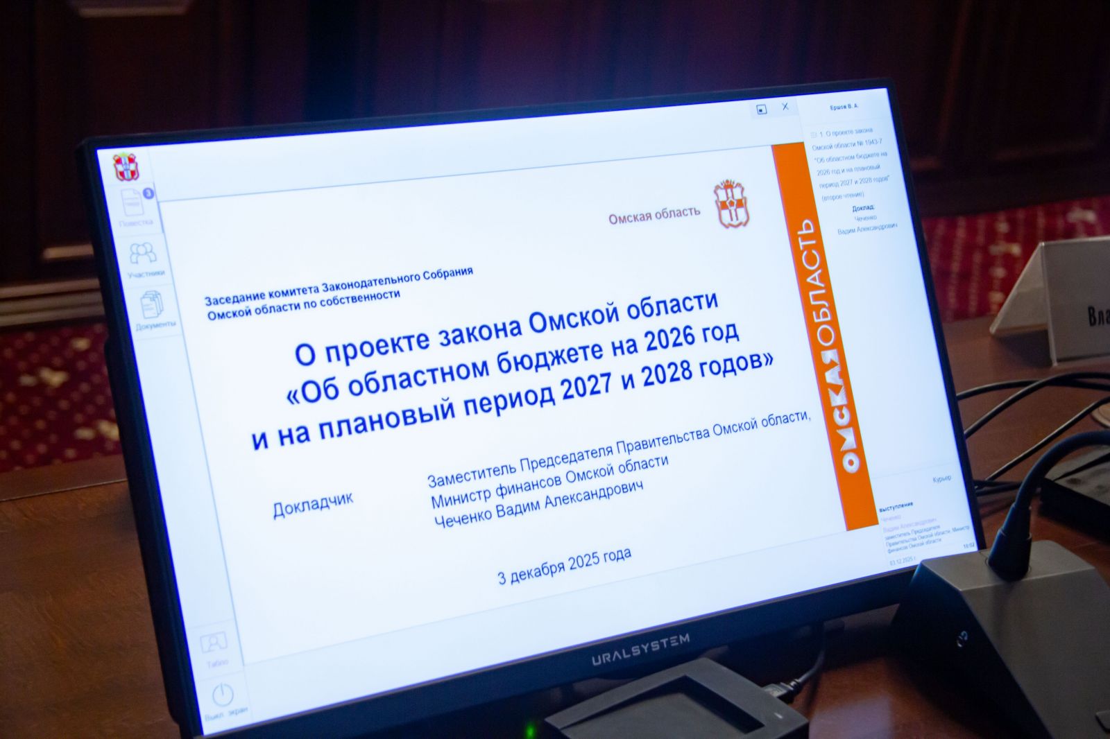 Председатель регионального отделения Партии "СПРАВЕДЛИВАЯ РОССИЯ", депутат Законодательного Собрания Омской области Владимир Владимирович Гуселетов принял участие в заседании профильного комитета, где рассматривался проект областного бюджета на 2026 год и плановый период.